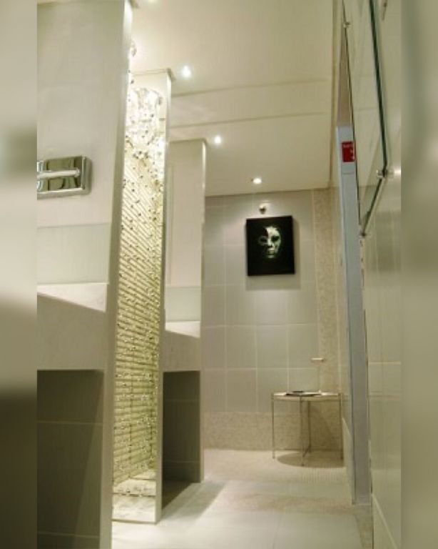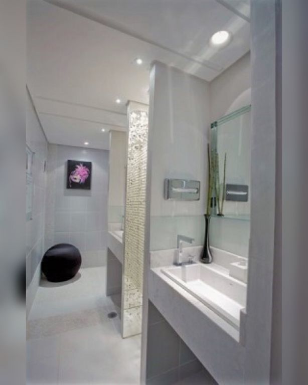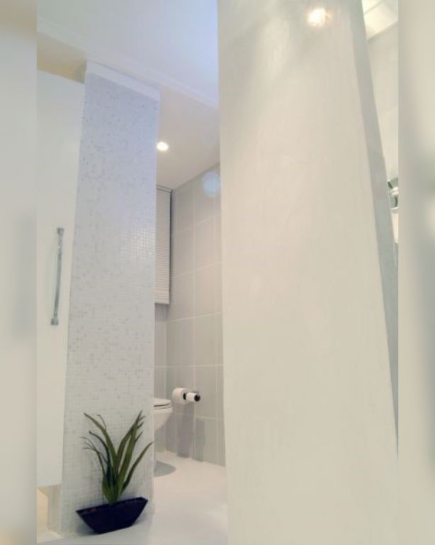 Design interiores projeto e decoração Casa Cor 2008 Curitiba. Eram dois banheiros públicos totalmente distintos com portas de entrada também distintas. A premissa do projeto seria, destes dois banheiros criar um ambiente integrado aos dois sexos na érea de lavatórios, e um espaço totalmente distinto nas cabines sanitárias, utilizando o branco como cor em todos os revestimentos. Banheiro denominado branco que te quero branco. A iluminação foi trabalha para criar alguns destaques de diferentes texturas no próprio branco e o resultado foi uma decoração de interiores que remeteu um local agradável aos olhos, limpo, e asséptico.