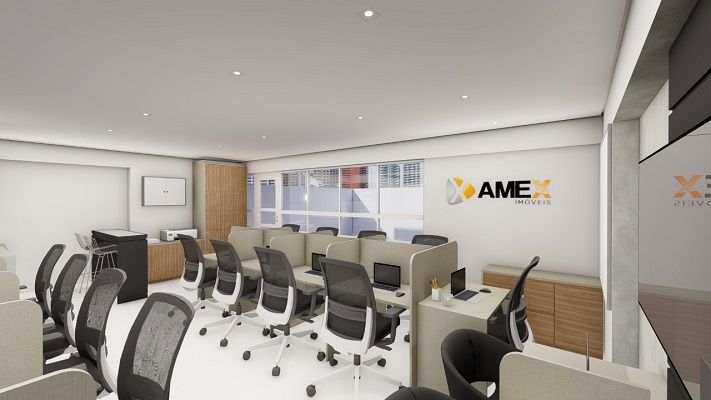 O design de interiores e decoração efetuado na sala comercial do moderno edifício Today`s Office para Amex Imobiliária, com referência de móveis existentes adequando a quase o dobro das estações de trabalho. Os espaços foram pensados para receber pessoal de marketing nas apresentações de novos lançamentos e um terraço anexo que pudesse proporcionar um tempo de relax para os colaboradores.